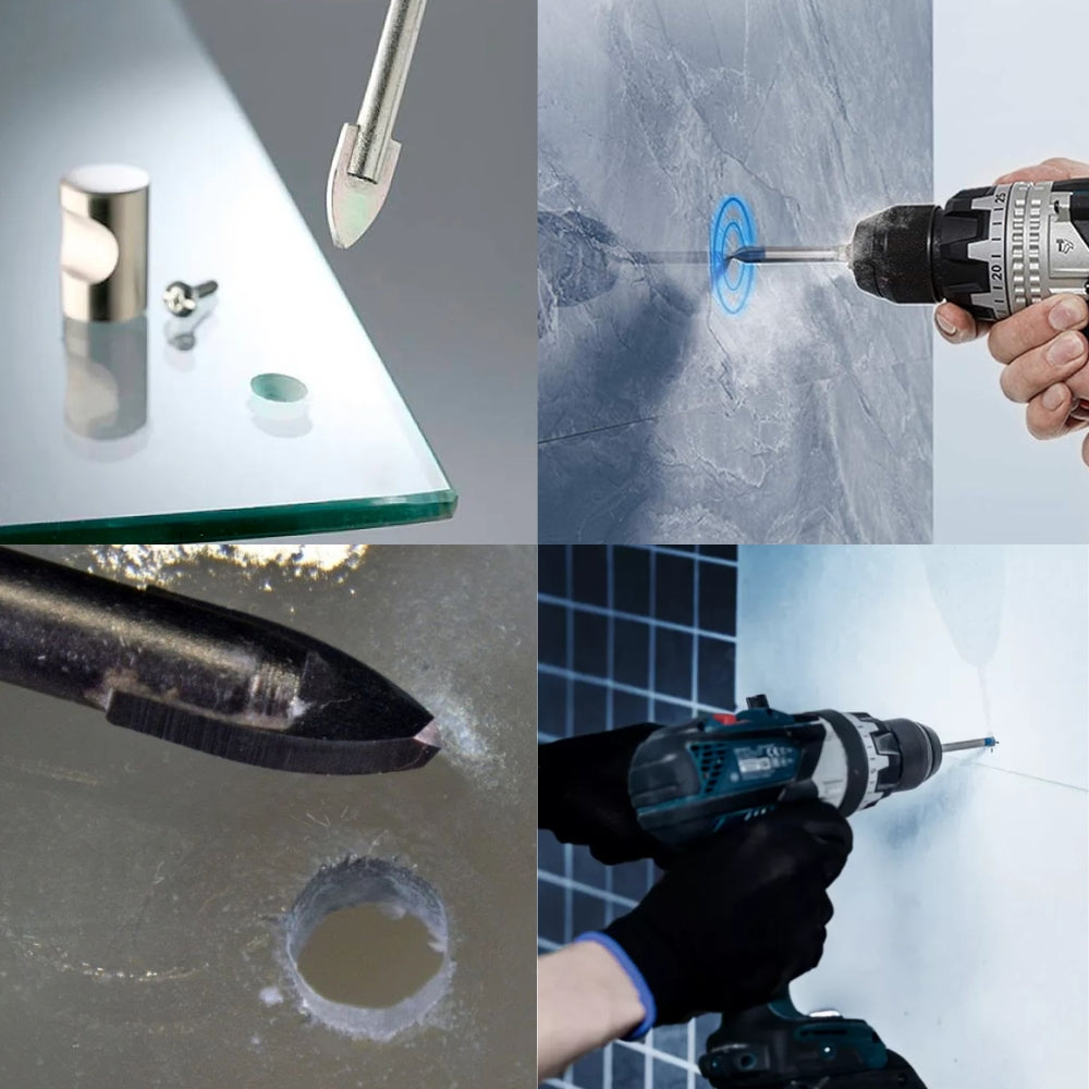 El corazón de su diseño es su punta de carburo de tungsteno, un material ultra resistente que permite atravesar materiales frágiles sin riesgo de romperlos o agrietarlos. Su geometría en forma de lanza concentra la fuerza en un solo punto, facilitando una perforación precisa desde el primer contacto y evitando deslizamientos, algo crucial cuando se trabaja sobre superficies lisas.