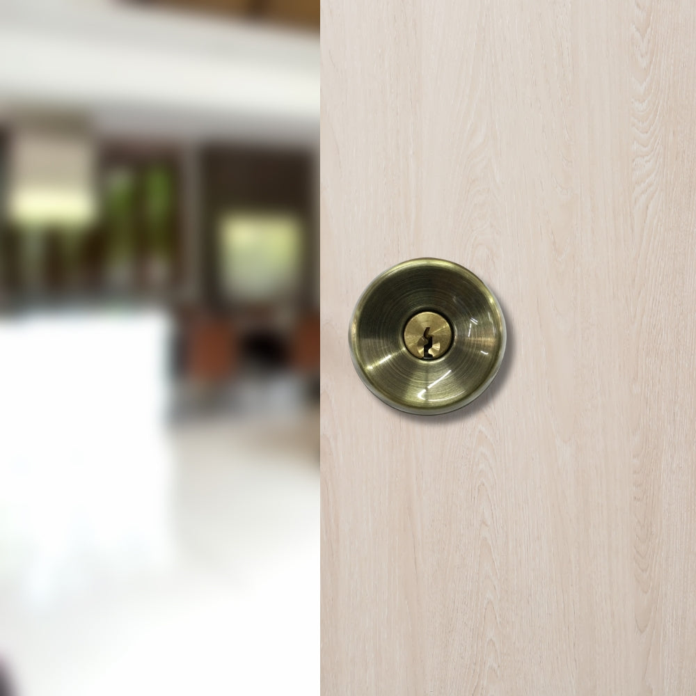 Diseñada para adaptarse a puertas de entrada tanto interiores como exteriores, esta cerradura es compatible con puertas de tipo tubular o cilíndrico. Su acabado en bronce antiguo aporta un aire tradicional y refinado, ideal para espacios que buscan conservar una estética cálida y elegante. El pomo redondeado de estilo robusto brinda un agarre cómodo y firme, perfecto para el uso diario, mientras que el mecanismo de llave-botón garantiza un funcionamiento sencillo y eficiente.