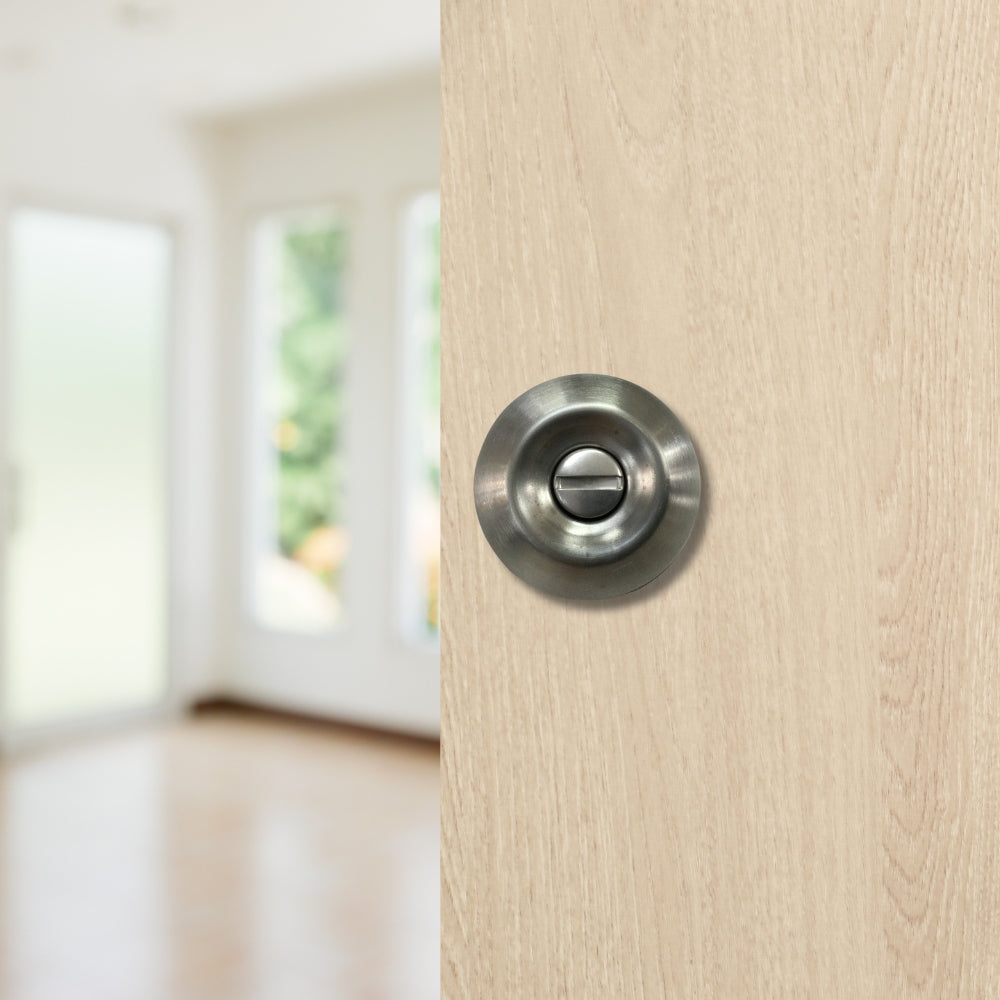 El pomo estilo bola completa proporciona una sujeción cómoda y firme, ideal para un uso diario sin complicaciones. El sistema de cierre con botón desde el interior permite bloquear rápidamente la puerta para mayor privacidad, lo que lo hace perfecto para habitaciones, oficinas privadas o baños. Este diseño simple y eficiente responde a las necesidades del día a día sin renunciar a un acabado moderno.