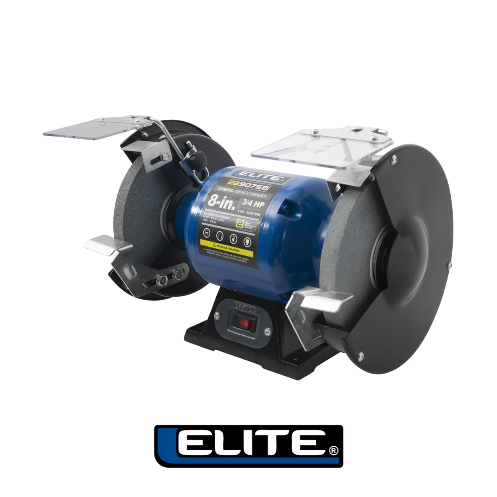 Le presentamos el esmeril de banco de 8" con motor de 3/4HP y 550W de potencia de la marca Elite. Este esmeril es una herramienta robusta y confiable, ideal para tareas de afilado, pulido y desbaste en talleres y garajes.