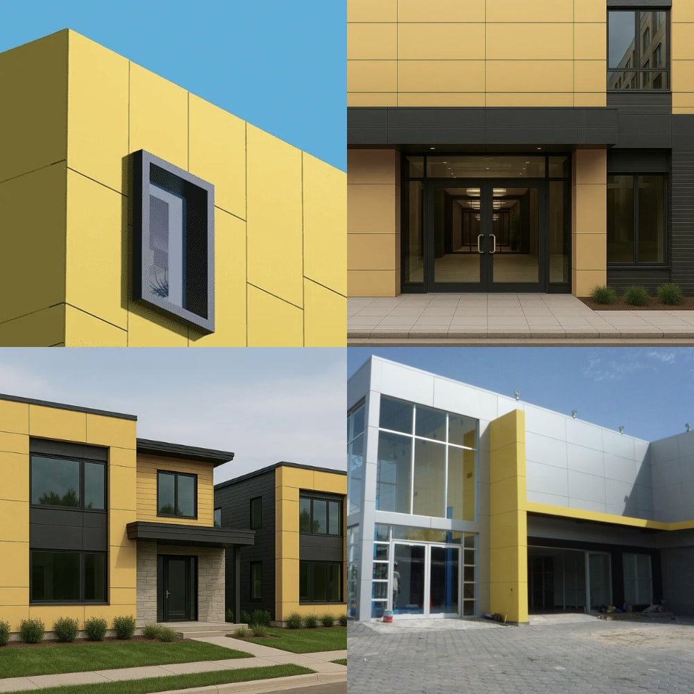 El recubrimiento exterior en color amarillo es un distintivo de su calidad y está diseñado para soportar condiciones exteriores temporales durante el proceso constructivo, lo que la hace versátil para aplicaciones tanto en interiores como en fachadas ventiladas. Gracias a su composición, esta lámina cumple con normas de resistencia al fuego y estándares de construcción que garantizan seguridad y confianza en el proyecto final.