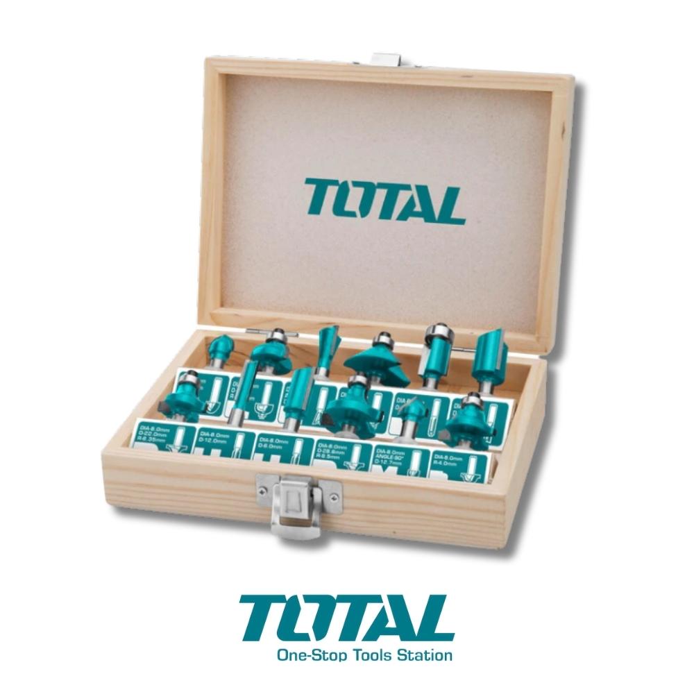 Le presentamos el maletín mixto de 12 piezas de puntas para router de 1/4" de la reconocida marca TOTAL TOOLS, modelo TACSR0104121. Este completo set de puntas para router es ideal para trabajos de construcción, brindando versatilidad y precisión en cada proyecto.