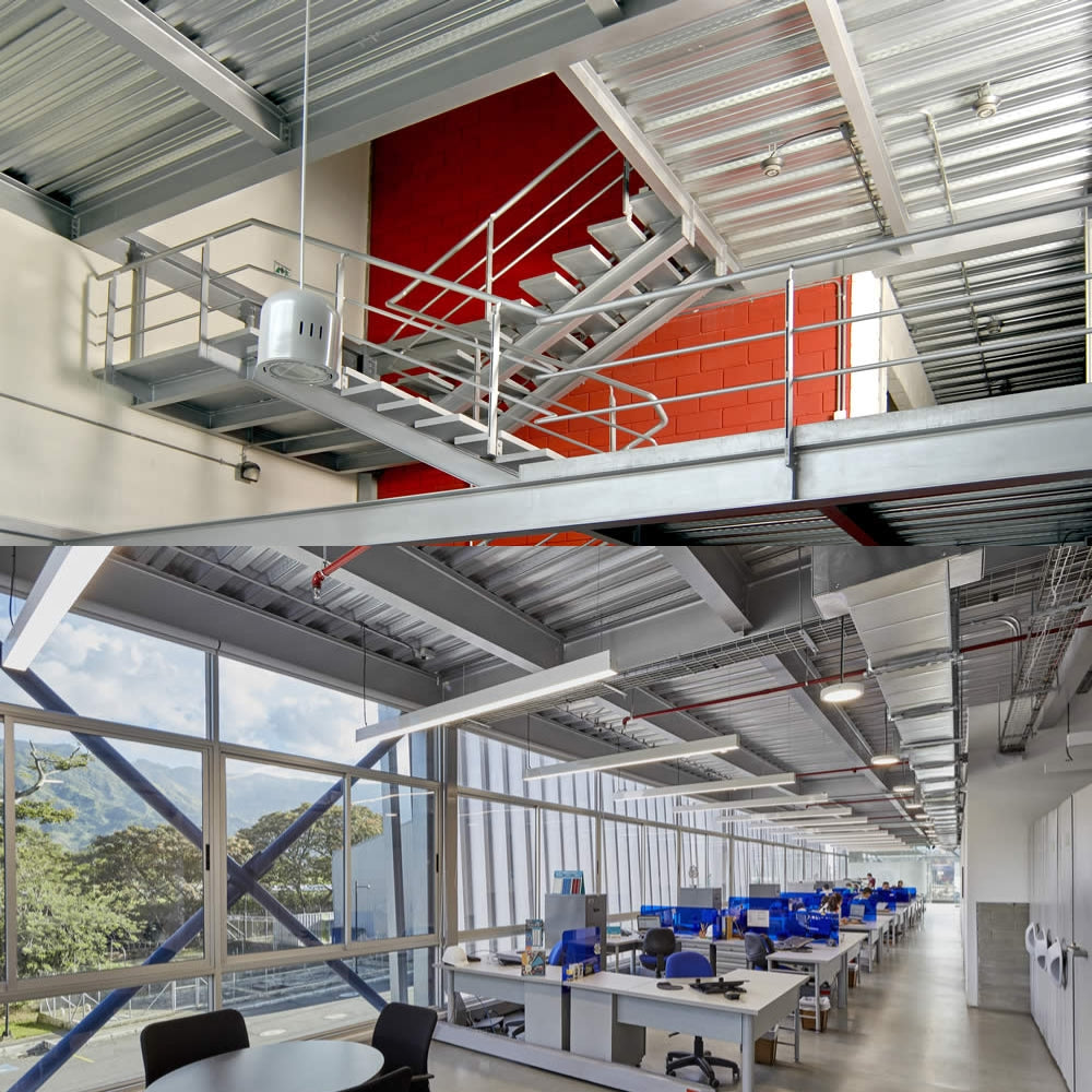 El Metaldeck actúa como una placa colaborante que no solo reemplaza eficazmente el acero de refuerzo tradicional (como la varilla corrugada), sino que también trabaja en conjunto con el concreto para soportar las cargas estructurales. Este diseño colaborativo permite reducir considerablemente el volumen de acero necesario, disminuyendo el peso total de las losas y, en consecuencia, reduciendo el tamaño y la carga sobre columnas, vigas y cimentaciones. Todo esto se traduce en un importante ahorro económico y una mayor rapidez en la ejecución del proyecto.